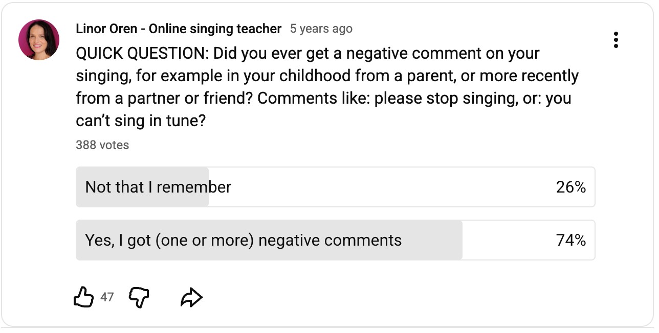 I asked my YouTube community about the type of feedback they received regarding their voice while growing up. The results were interesting, to say the least: